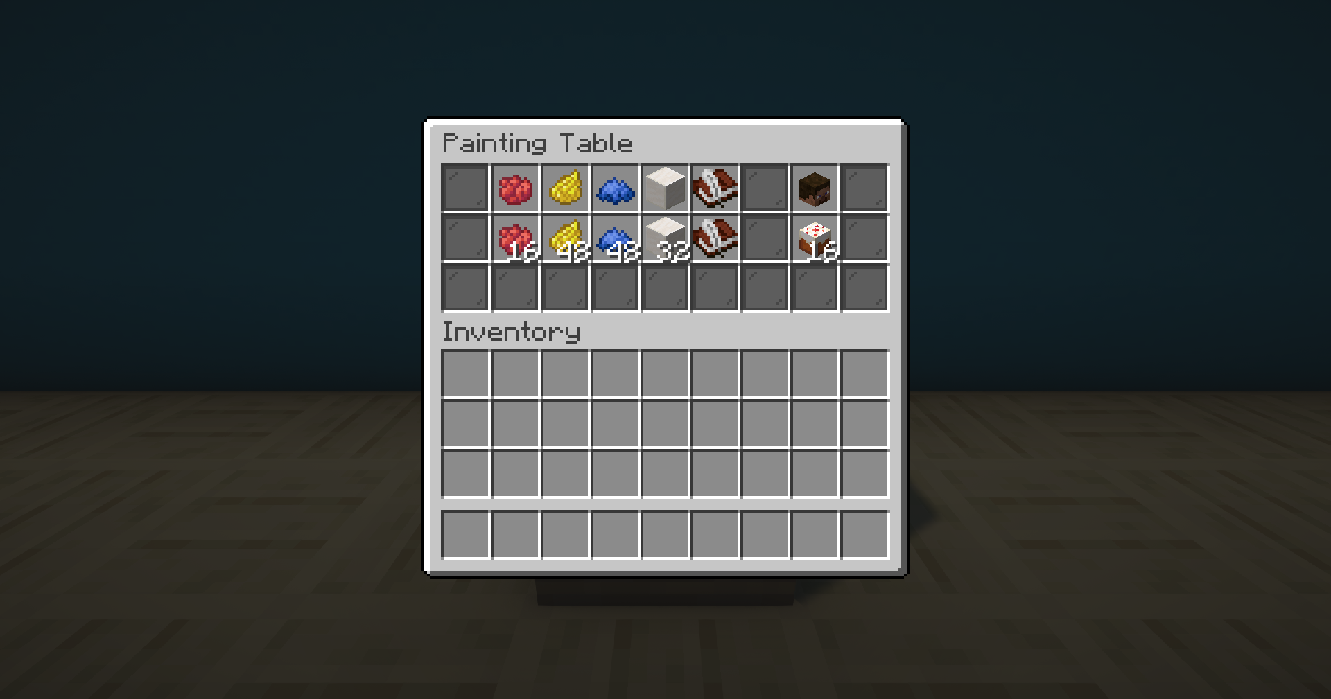 After you crafted it, you can simply place down your painting table. The block has its own UI that shows its requirements.